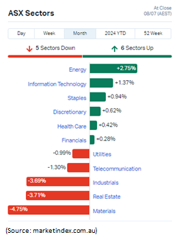 The leading Australian benchmark index S&P/ASX 200 (XJO) which is considered the investable benchmark of the Australian equity market declined 1.23% over the last month to 7,763.2 points on 8th July’2024, impacted by heavyweight miners BHP, RIO Tinto, FMG, South32 (S32), etc. The All Ordinaries (XAO) index (which contains the 500 largest ASX listed companies) is considered a total market barometer for the Australian stock market declined 1.24% to 8,012.2 points today. Sectorwise, sectors such as Energy, Information Technology, Staples, Discretionary, Health care, and Financials have performed well. Here, we are going to discuss about the consumer discretionary sector, its drivers, and the outlook of the sector.